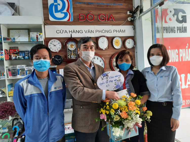 Nhân dịp kỷ niệm Ngày Quốc tế Phụ nữ 8/3/2021, sáng ngày 08/03, Ban lãnh đạo và BCH Công đoàn Công ty TNHH Thương mại & Văn hóa Đỗ Gia đã tới gặp mặt chúc mừng các nữ nhân viên lao động làm việc tại công ty.