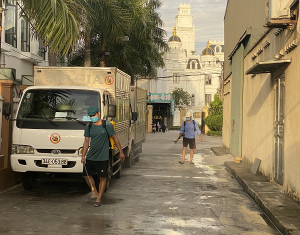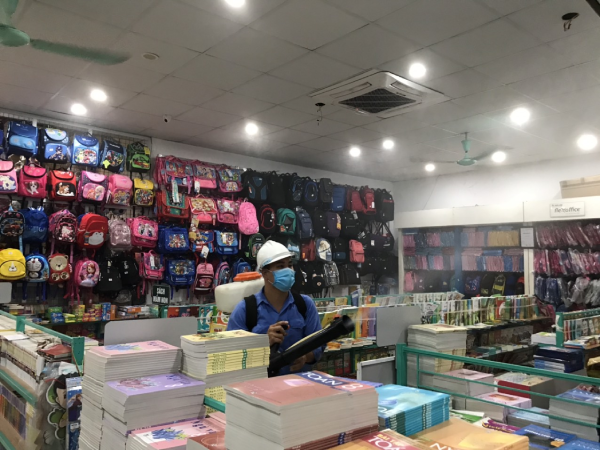 Ngày 16/08 công ty đã tiến hành phun thuốc khử khuẩn toàn bộ diện tích kho vận cũng như các cửa hàng của công ty. Ngoài ra công ty còn tiến hành đo thân nhiệt và ghi chép lý lịch tất cả người ra vào công ty.