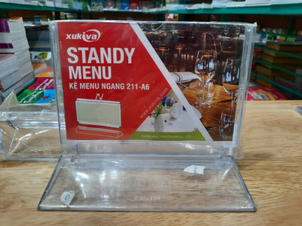 Khung thực đơn A6 (khổ ngang) dùng lưu trữ thực đơn, nội dung quảng bá, thông báo,... Khung thực đơn A6-211 được sản xuất từ loại nhựa trong cao cấp sẽ làm nổi bật từng đường nét trên nội dung quảng cáo của bạn Phù hợp với không gian cửa hàng giới thiệu sản phẩm, thông báo trong trường học,...