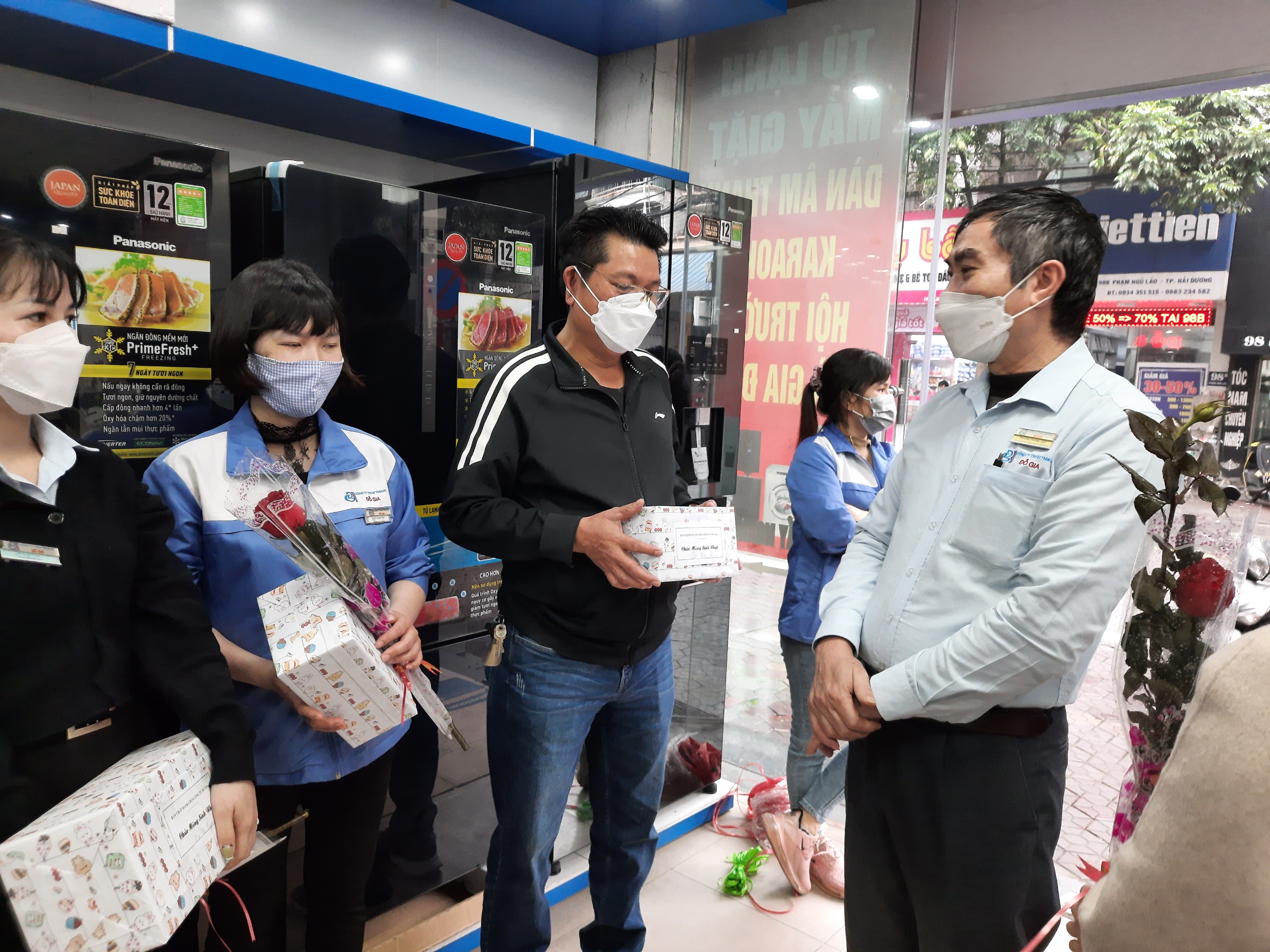 Dưới đây là một số hình ảnh tặng hoa và quà tại các đơn vị, cửa hàng.