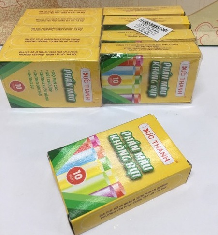 Phấn màu không bụi Đức Thanh là sản phẩm tiêu biểu của Công ty TNHH Thiết bị giáo dục Đức Thanh. Đây là sản phẩm với các màu cơ bản (xanh, đỏ, vàng) dùng cho mọi loại hình đào tạo.