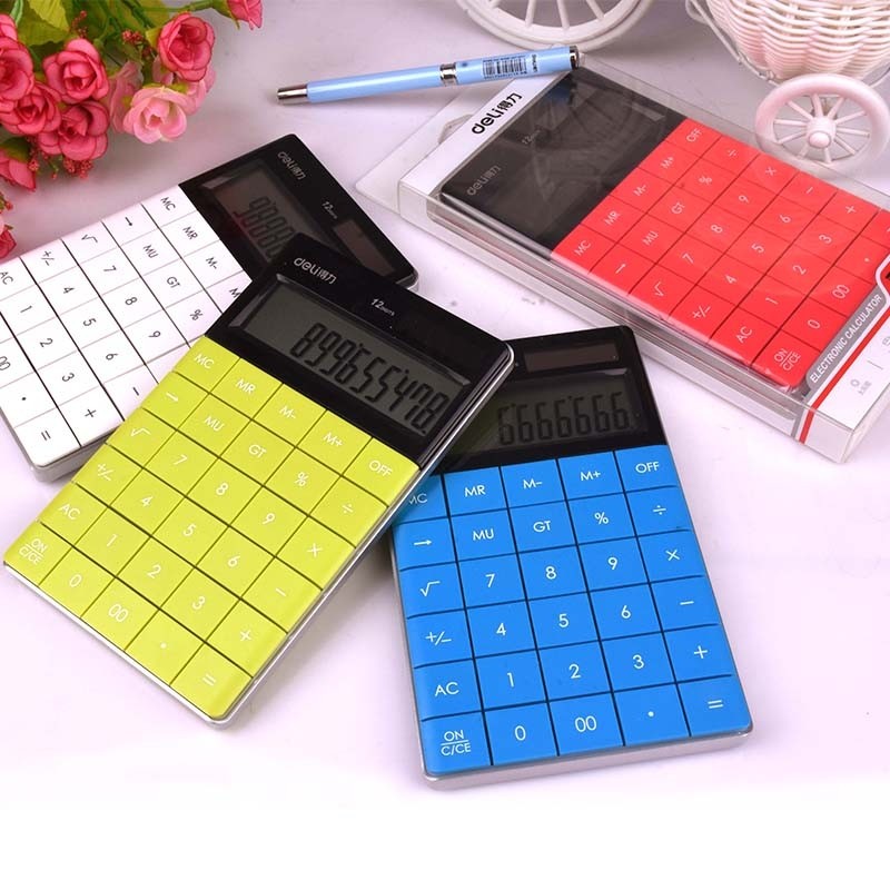 - Máy Tính Deli 1589 chất lượng cao, nhiều màu sắc, các nút bấm lớn với pin năng lượng mặt trời.