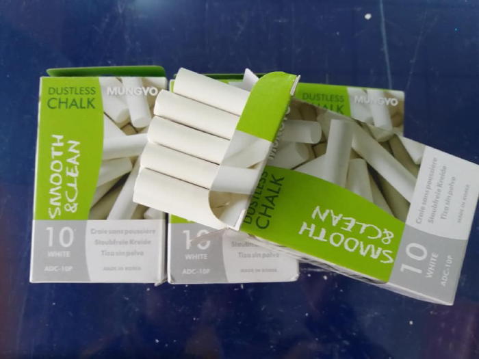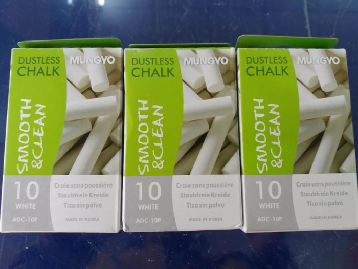 Phấn Trắng Không Bụi Mungyo ADC-10P (10 Viên/hộp) là vật dụng cần thiết cho học sinh và giáo viên sử dụng ở trường học. Sản phẩm được sản xuất theo công nghệ hiện đại, viên phấn chắc chắn, tiết kiệm tối đa khi sử dụng. Phấn được làm từ chất liệu cao cấp, ít bụi, an toàn cho sức khỏe người sư dụng.