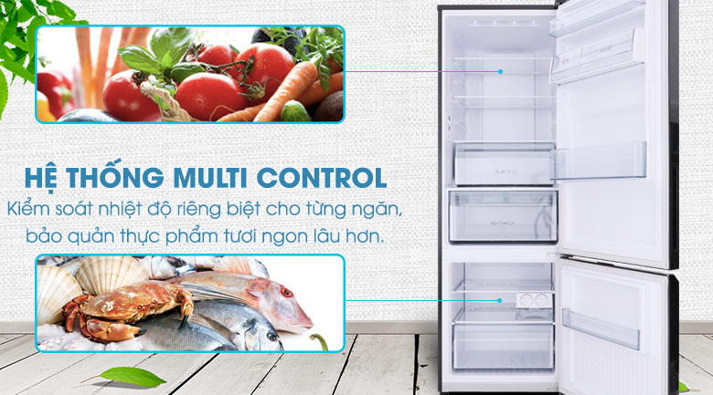 Hệ thống Multi Control giúp chiếc tủ lạnh cấp đông mềm này điều chỉnh nhiệt độ thích hợp cho từng ngăn, tăng đáng kể hiệu năng làm lạnh và lượng điện tiết kiệm được.
