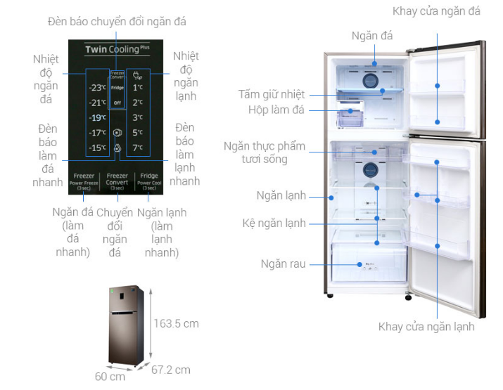 Cao 163.5 cm - Rộng 60 cm - Sâu 67.2 cm - Nặng 58 kg |