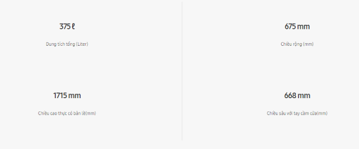 - Chiều sâu không có tay cầm cửa(mm): 668 mm