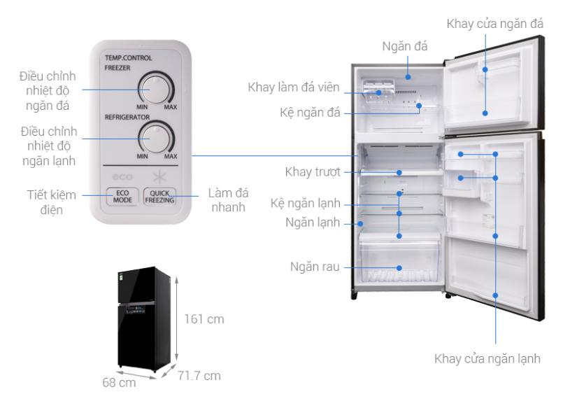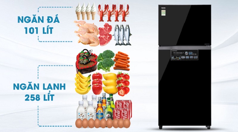Chiếc tủ lạnh ngăn đá trên này sẽ cho bạn thêm nhiều không gian hơn để có thể bảo quản thực phẩm thoải mái và nhiều hơn với dung tích tổng của tủ tới 359 lít, nếu gia đình bạn có từ 3 - 4 thành viên bạn có thể lựa chọn sản phẩm này.