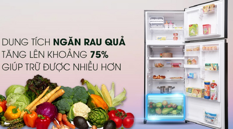 Ngăn rau củ thiết kế lớn, bảo quản tốt hơn