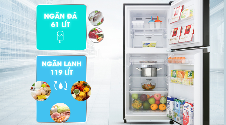 Chiếc tủ lạnh Toshiba này chỉ sở hữu dung tích 180 lít, phù hợp với gia đình nhỏ tầm 2 – 3 người nhưng sẽ là nội thất bắt mắt trong không gian nhà bạn.