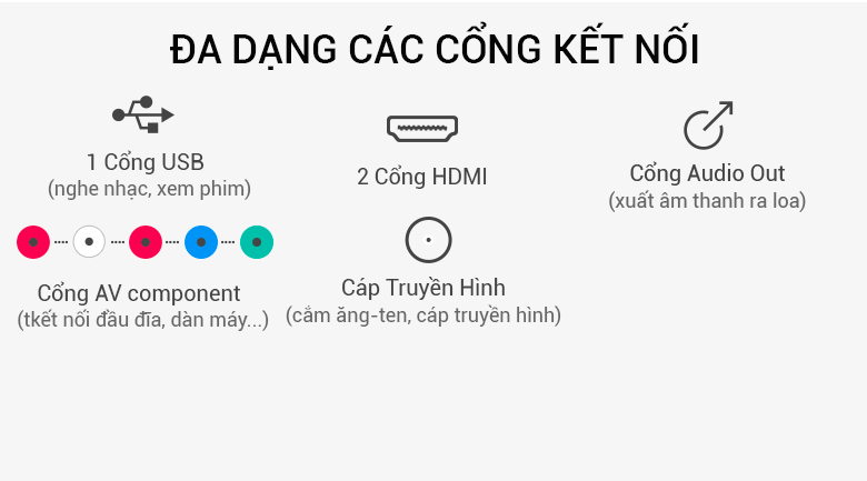 + Cổng Optical: Cho phép tivi xuất âm thanh chất lượng cao sang dàn loa chỉ bằng một dây cáp.