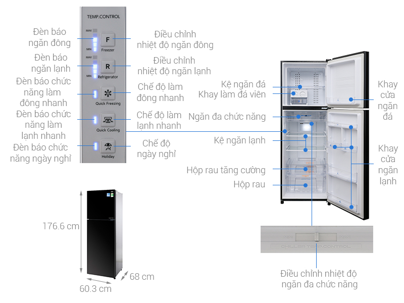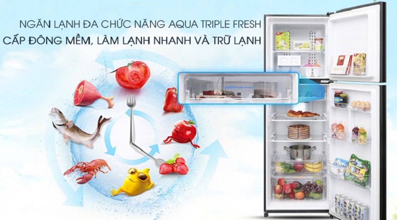 - Trữ tươi, làm lạnh nhanh, cấp đông mềm tiện dụng với ngăn Aqua Triple Fresh.